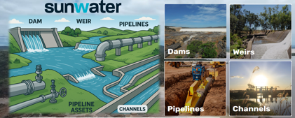 Sunwater is an Australian water supply company that operates and maintains a network of dams, channels and irrigation schemes across the state of Queensland. Its 19 dams and 1951 kilometres of pipeline store and deliver around 40 per cent of Queensland’s commercial water use, supporting regional growth and prosperity.