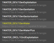 !       Seuls les services associés à la catégorie « 1spatial/admin » sont proposés.