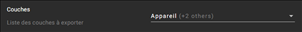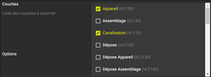 Une liste à choix multiples (case à cocher) s’affiche pour sélectionner les couches à exporter.