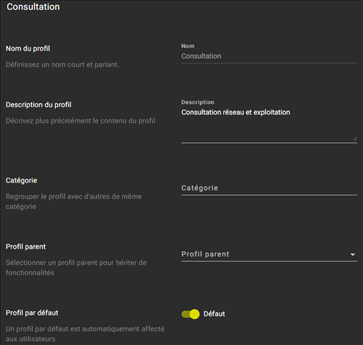 d’édition de profil permet de créer un nouveau profil ou d’éditer un profil