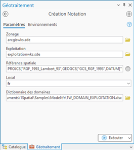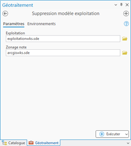 Paramètres : ► Exploitation : connexion vers la source de données d’exploitation ; ► Zonage note : facultatif, connexion