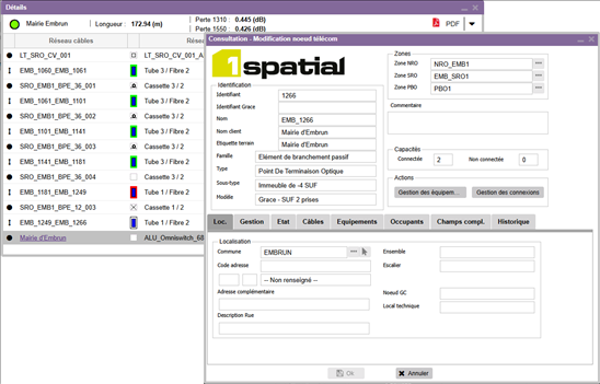 -   Accès aux fiches attributaires des nœuds télécom et des câbles impactés par la route,