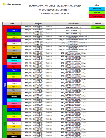 du rapport donne la dénomination du câble, son sous-type et son taux