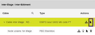 !       A noter que si l’objet principal est un nœud (télécom ou génie civil), l’interface va afficher les câbles qui y sont liés, mais aussi les nœuds qui sont à l’autre extrémité de ces câbles. Par contre, si l’objet principal est un câble ou un lien de génie civil, l’interface affiche seulement les nœuds situés aux extrémités du lien, pas les autres liens connectés à ces nœuds. (à première vue, il n’y aurait pas d’utilité à les inclure, d’un point de vue métier).