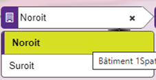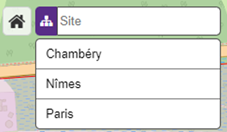 - Si vous sélectionnez un bâtiment (un site) dans le fil d'ariane, la carte zoome sur le bâtiment (le site),