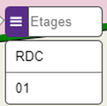 Se situe dans le coin gauche en haut de la carte : permet de se localiser rapidement à un endroit et de naviguer entre Site / Bâtiment / Étage.