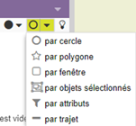liste déroulante (Rond blanc) permet : ► De sélectionner par cercle ; ► De sélectionner par polygone ; ► De sélectionner par fenêtre ; ► De sélectionner par objets sélectionnés