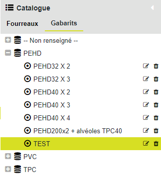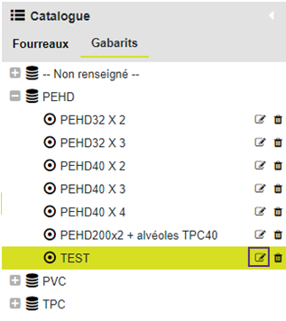 Il est possible de créer, modifier et supprimer des gabarits de fourreaux.