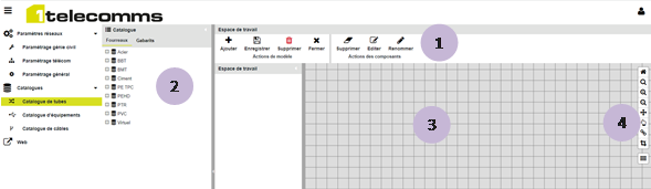 Volet de visualisation des tubes (fourreaux) et leurs gabarits existant dans le catalogue.