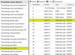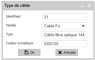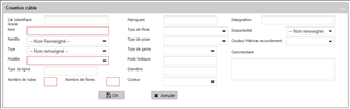 Si le type ou le sous type du câble à créer n’existe pas, cliquer sur le bouton « Ajouter ». Saisir les informations nécessaires dans la fiche et valider. Cliquer sur le bouton « OK ». |