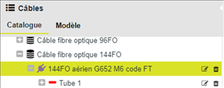 Si nécessaire, accéder au paramétrage télécom. Vérifier la présence d’un type de câble correspondant à 144 fibres. |