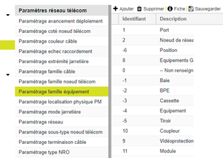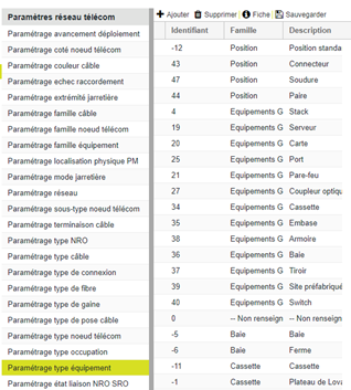 Sélectionner l’objet « Paramétrage famille équipement ». |