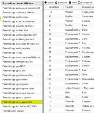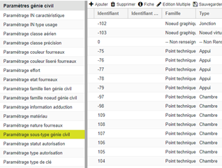 ► Accéder à la liste concernée (famille, type ou sous-type) ;