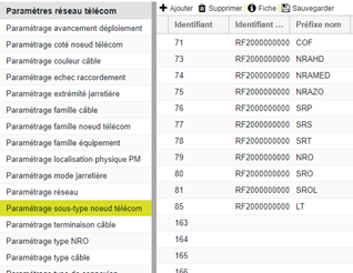 Accéder à la liste des sous-types nœud télécom. Cliquer sur le bouton « Ajouter ». |