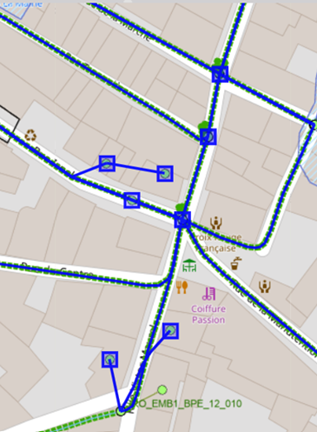 la carte, on peut sélectionner des éléments (Nœud GC, Lien GC, Câble, …).