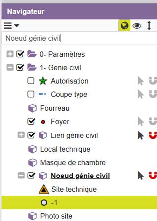 Taper les premières lettres d’un calque, une liste de calques va apparaitre. Par exemple si vous tapez « Nœud », vous obtiendrez tous les calques contenant ce mot. |