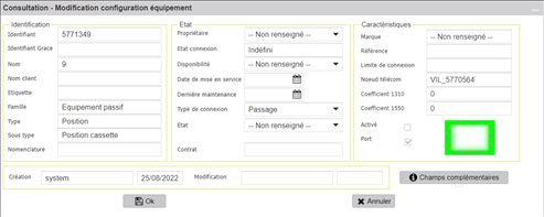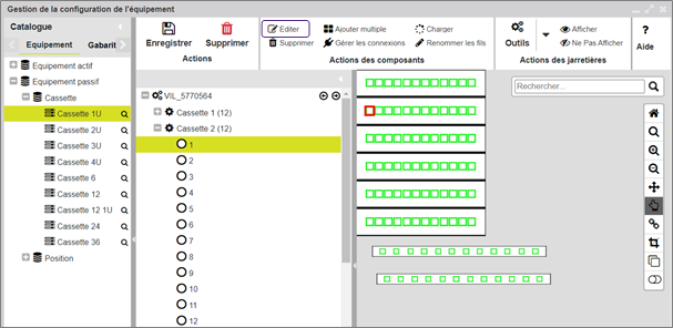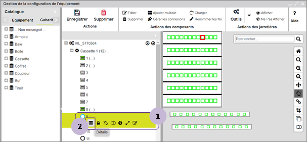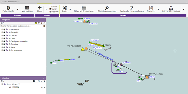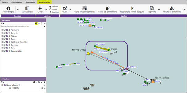 Pour consulter cette interface, cliquer sur la commande « Gérer les équipements » dans l’onglet « Gestion » et sélectionner un nœud télécom :