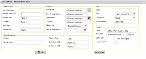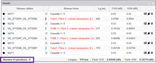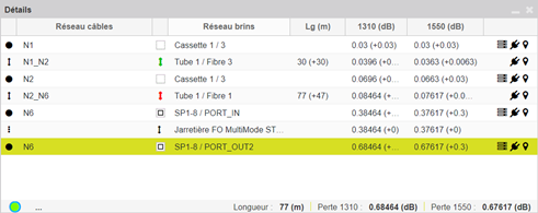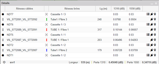 Cliquer sur le bouton « Détails ». Une fenêtre s’affiche contenant les détails de la route optique passant par le connecteur sélectionné :