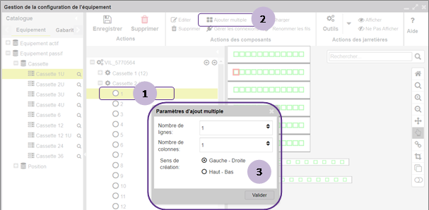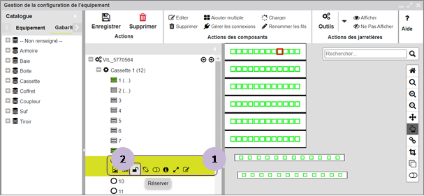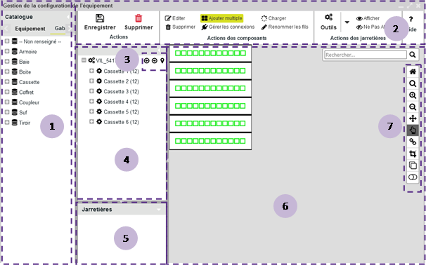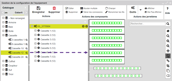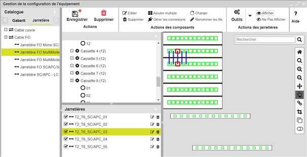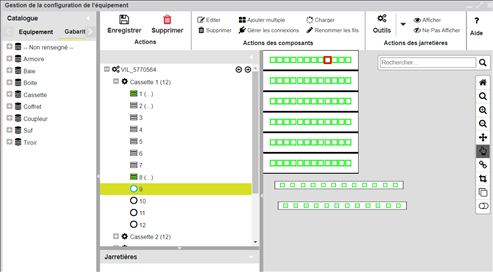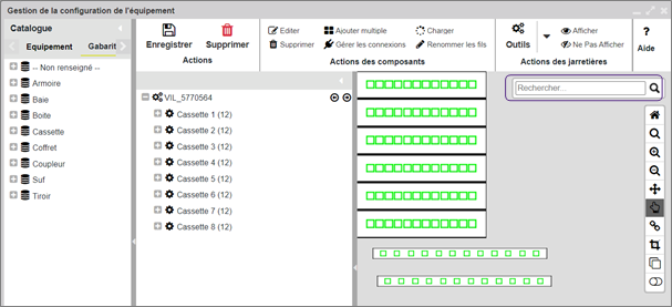Accès aux catalogues des équipements, des gabarits et des jarretières. |