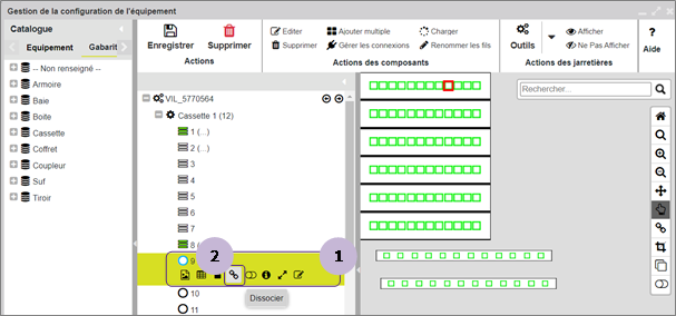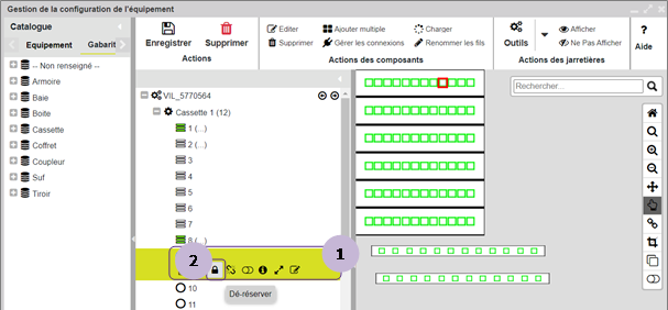 Sélectionner l’équipement et cliquer sur « Supprimer » dans l’onglet de « Actions des composants ».