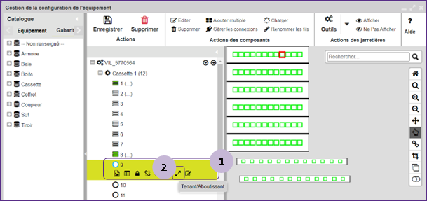 Désormais le(s) nœud(s) sélectionné(s) est/sont équipé(s). ! Seuls les nœuds ayant un gabarit affecté sont équipés. |