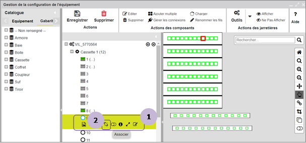 Sélectionner un composant de l’équipement et cliquer sur la petite flèche à droite de l’équipement. |