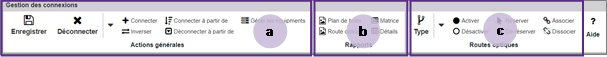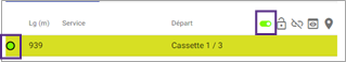 Les informations sur le service et l’activation/réservation ou non de la route sont affichées en bas à gauche de la fenêtre. |