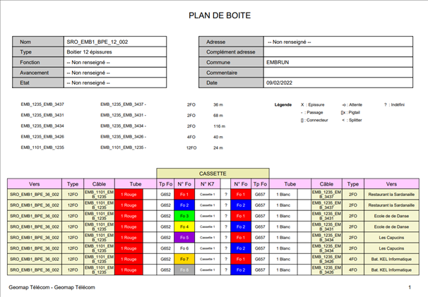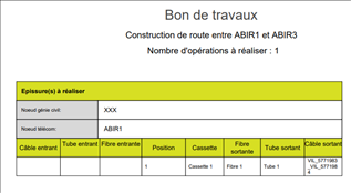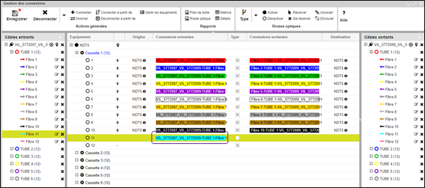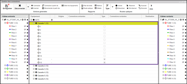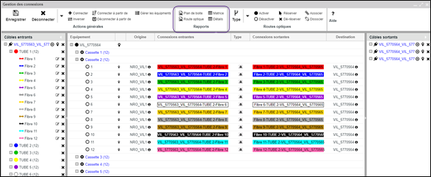 Cliquer sur « Matrice de raccordement ». Le téléchargement d’un fichier EXCEL est lancé. Ce rapport présente l’intégralité des routes optiques transitant par ce nœud :
