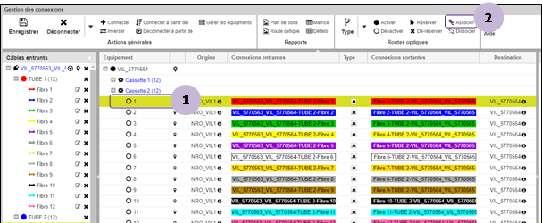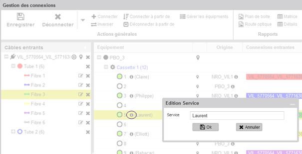service est associé à la route optique. L’icône d’association de service a changée. Cliquer sur