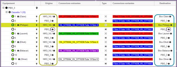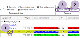 une ligne et cliquer sur le bouton d’affichage du détail des routes optiques