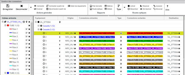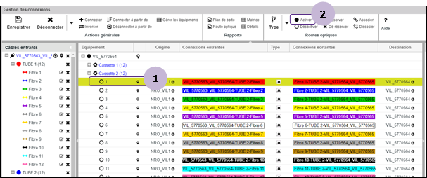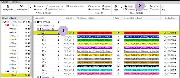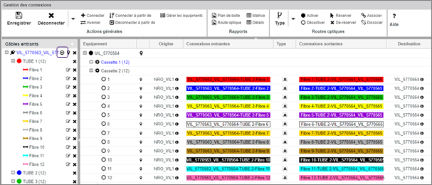 cliquer sur le bouton d’affichage du détail des routes optiques. |