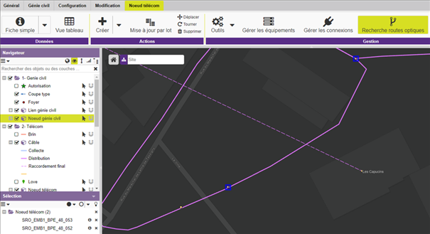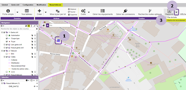 Sélectionner un nœud télécom et aller à l’interface de « Nœud télécom ». |