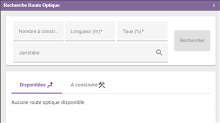 droite : ► Le nombre maximum de routes à construire (champ obligatoire) ; ► La longueur maximale de la recherche de la route optique (champ obligatoire) ; ► Le taux d’occupation maximal (champ obligatoire) ; ► Le type de jarretière choisi pour la création de route optique. |