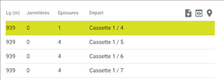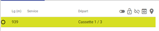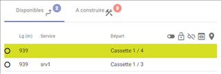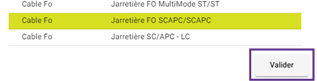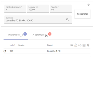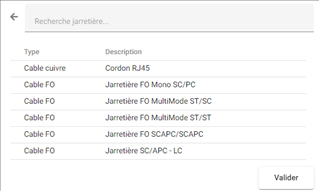 de jarretière. On a : ► Une flèche en haut à gauche pour revenir à la recherche de route optique. ► Un champ pour la recherche de jarretière. ► La liste des jarretières sous forme de tableau. La recherche filtre les jarretières en fonction de leurs
