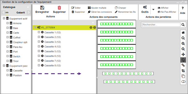 Choisir l’équipement dans le catalogue d’équipements, le sélectionner et le faire glisser/déposer dans la vue graphique.
