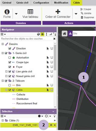 Cliquer sur le bouton « Zoom câble » pour mettre le câble en surbrillance sur la carte. |