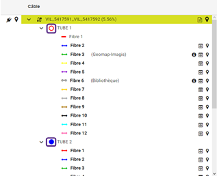 Cliquer pour ouvrir l'arborescence du câble sélectionné qui contient des tubes. |