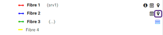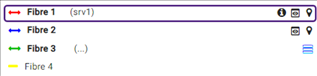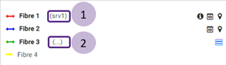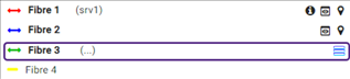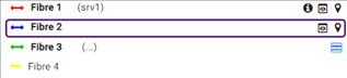 Les flèches sur les fibres indiquent leur état de connexion : ► Flèche double : la fibre est connectée des deux côtés ; ► Aucune flèche : la fibre n’est pas connectée. |