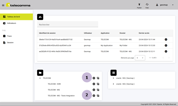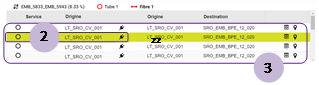 Pour chaque ligne dans le tableau de la route, deux actions sont disponibles : ► Détail de la route optique ; ► Localisation sur la carte. |