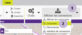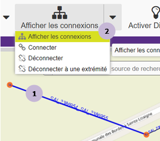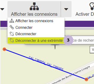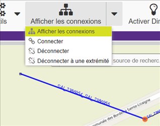 Si l’on demande les connexions de ce câble (Afficher les connexions), on ne voit plus que le nœud connecté (en surbrillance), l’autre ne l’est plus. De