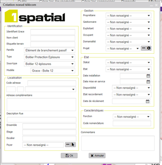 Renseigner le formulaire du nouveau nœud télécom « créé