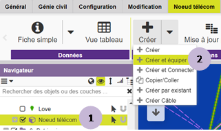 Renseigner le formulaire du nouveau nœud télécom créé et valider. |