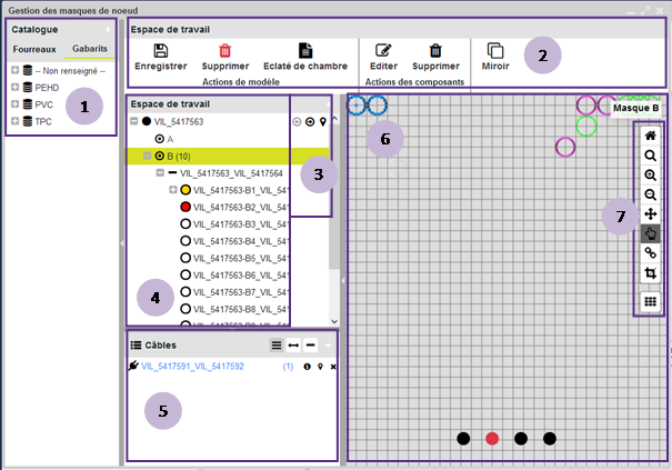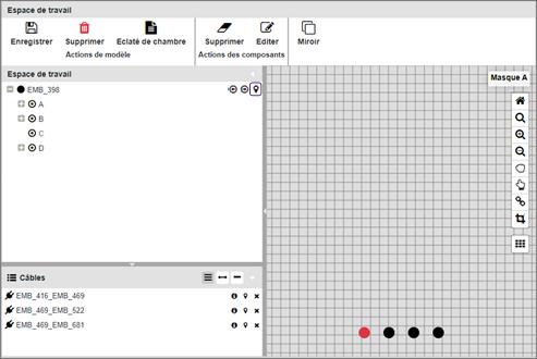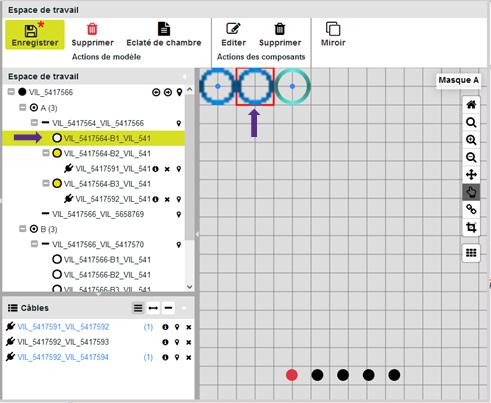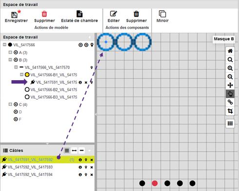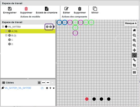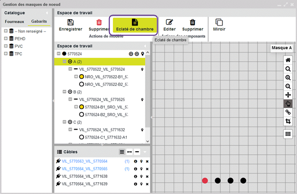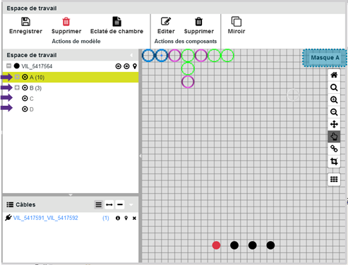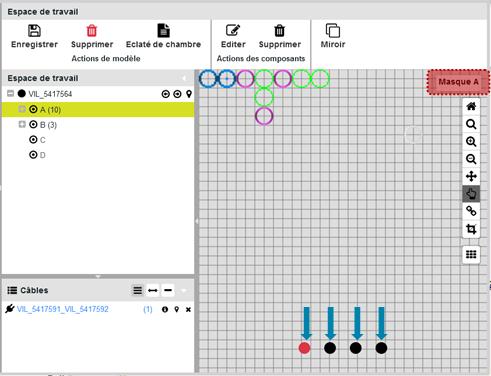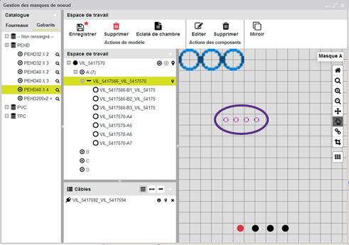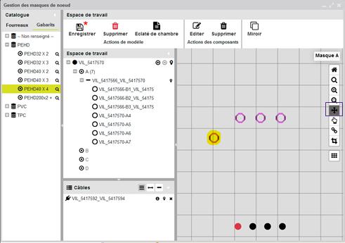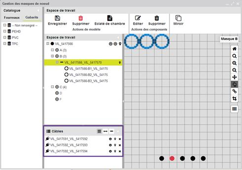 Dans la fenêtre de la gestion des masques de nœud, la partie centrale basse est consacrée aux câbles.