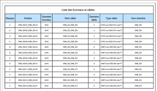 La deuxième page contient la liste des fourreaux et des câbles et leurs détails. On peut télécharger et/ou imprimer ce rapport. |
