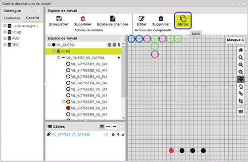 Dans l’espace de travail de la fenêtre de gestion des masques du nœud, sélectionner le masque A par exemple et cliquer sur la commande « Miroir » encadrée.