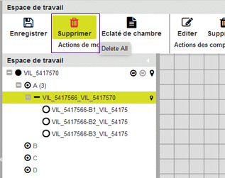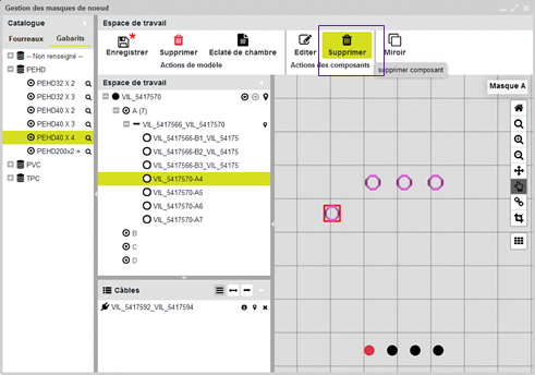 Sélectionner un fourreau, aller à « Supprimer » dans la barre des actions des composants.