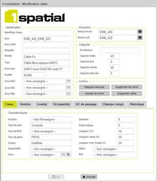 Dans cette partie on trouve la liste des câbles. Pour afficher le formulaire d’un câble, cliquer sur la commande encadrée. |