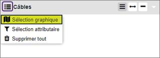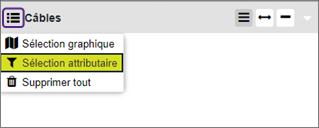 Dans la partie des câbles et pour ajouter un câble depuis une sélection attributaire, cliquer sur la commande encadrée puis sur « Sélection attributaire ». |