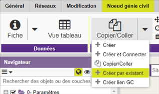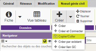 Dans les actions du nœud de génie civil cliquer sur l’action « Copier/Coller ». |