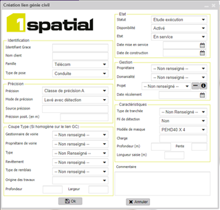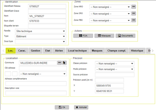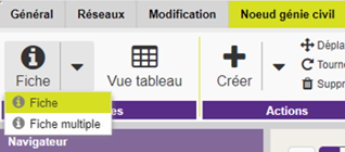 Sélectionner un Nœud génie civil et aller à « Fiche » pour